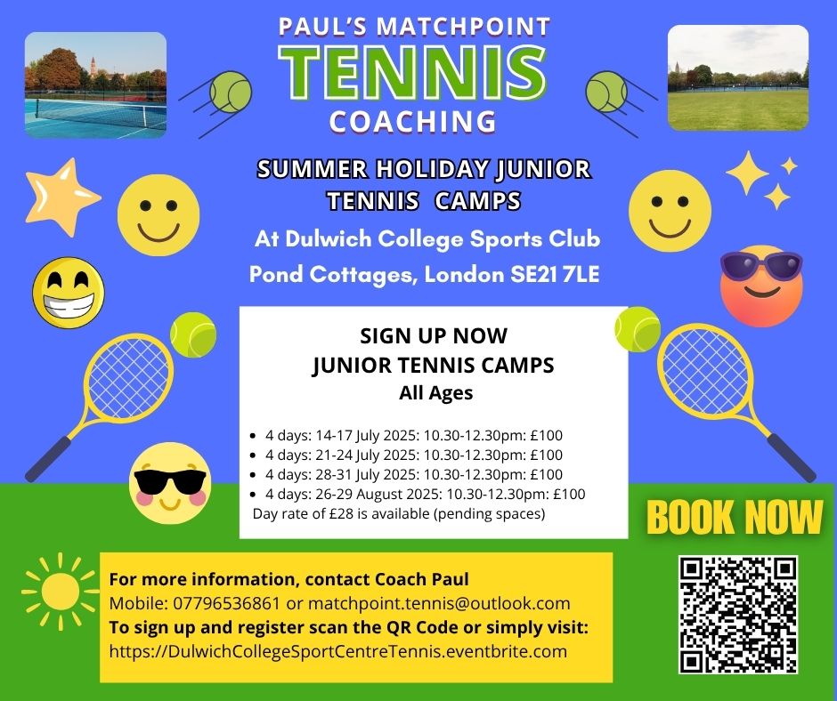 For more information, contact Coach Paul Mobile:07796536861 or matchpoint.tennis@outlook.com